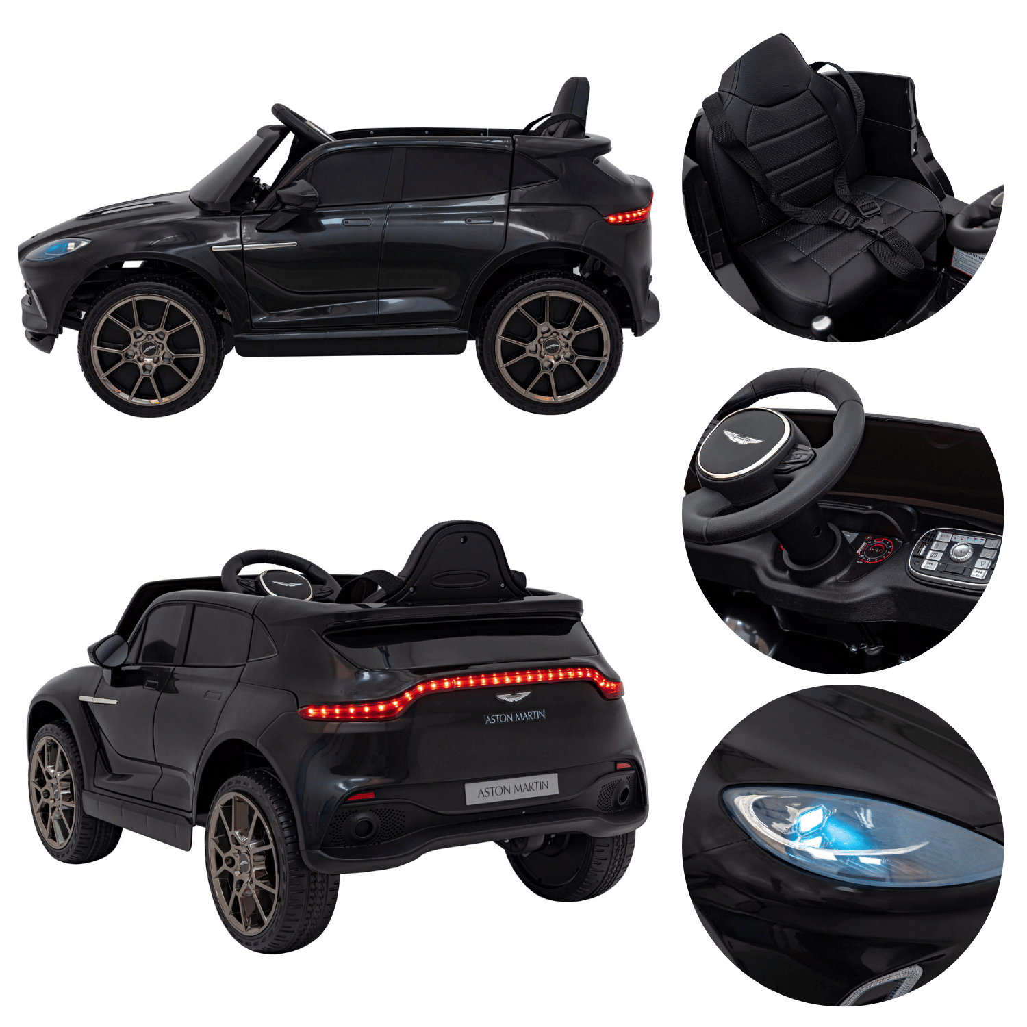 Aston Martin DBX na akumulator dla dzieci Czarny + Pilot + EVA + Pasy + Wolny Start + Audio LED