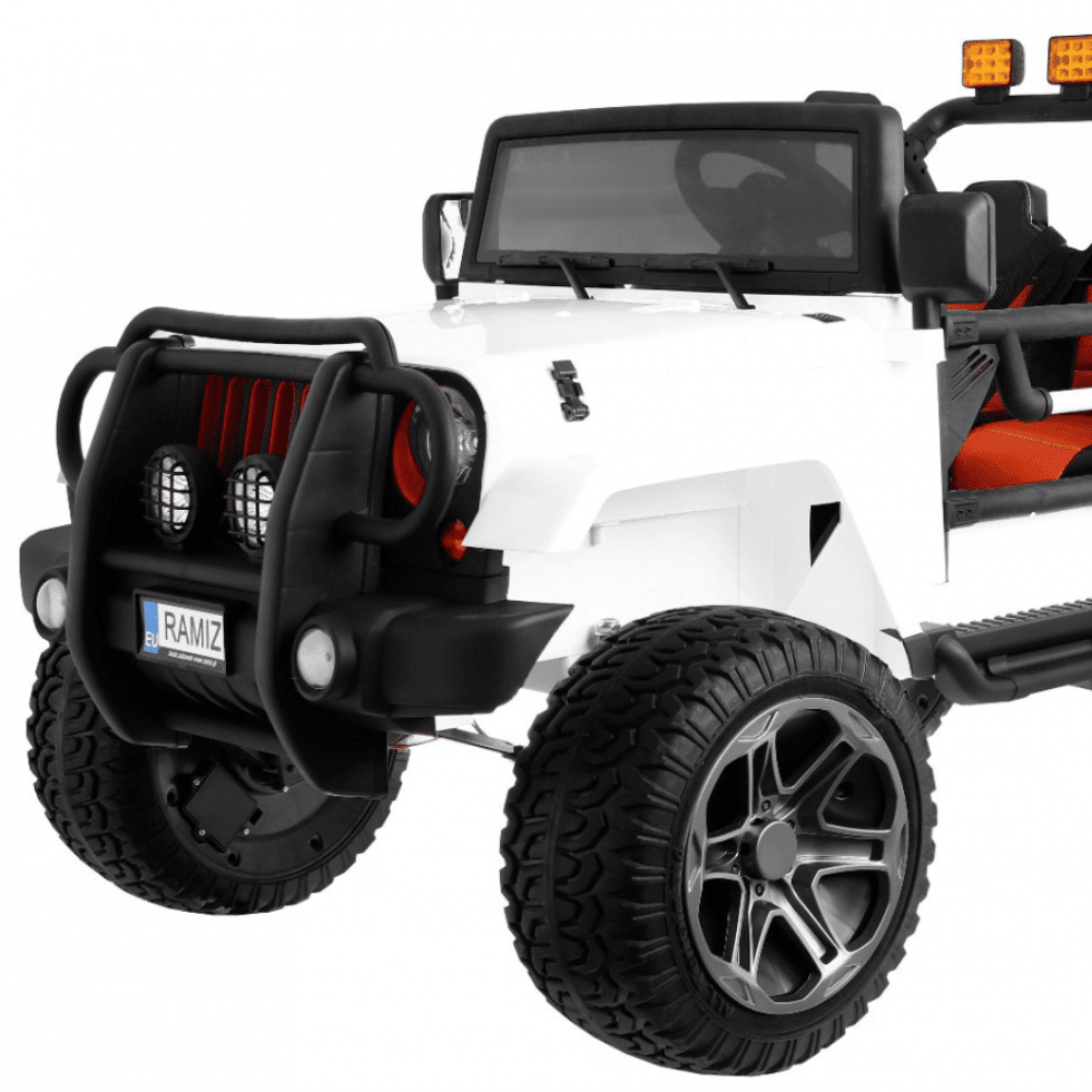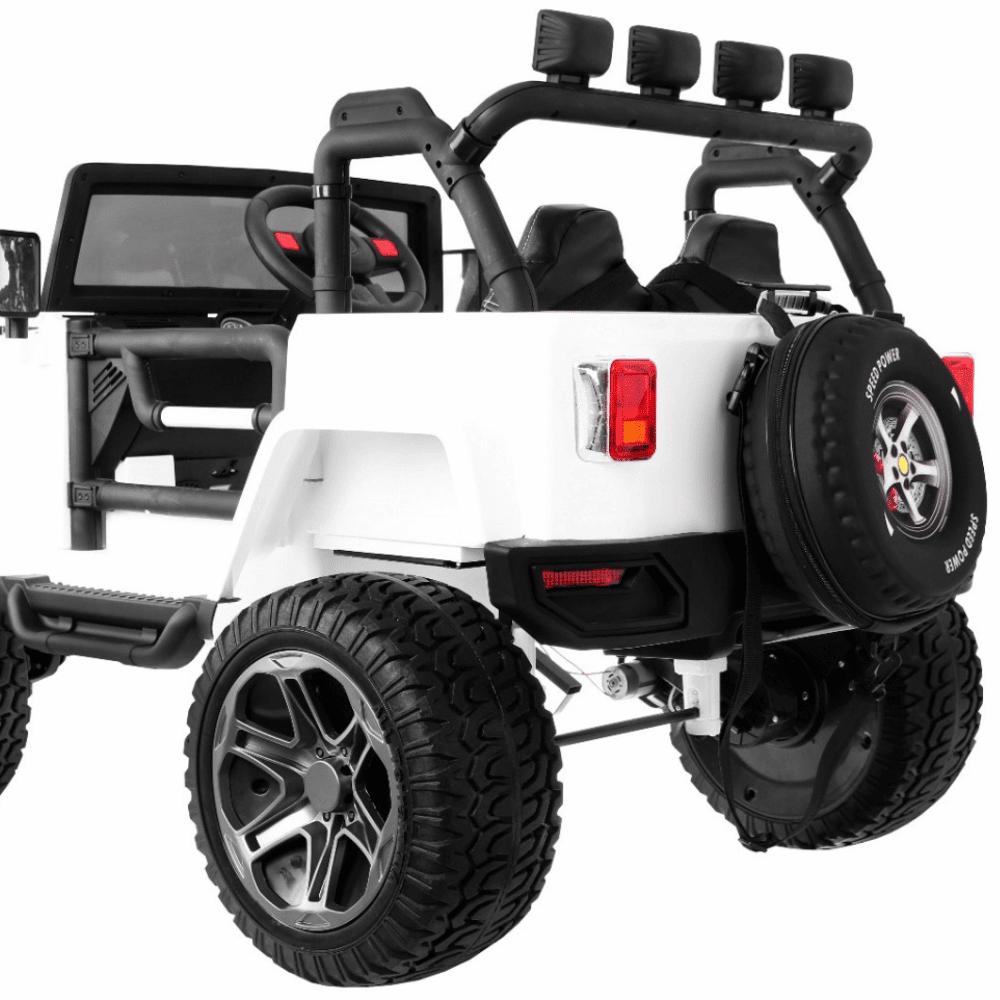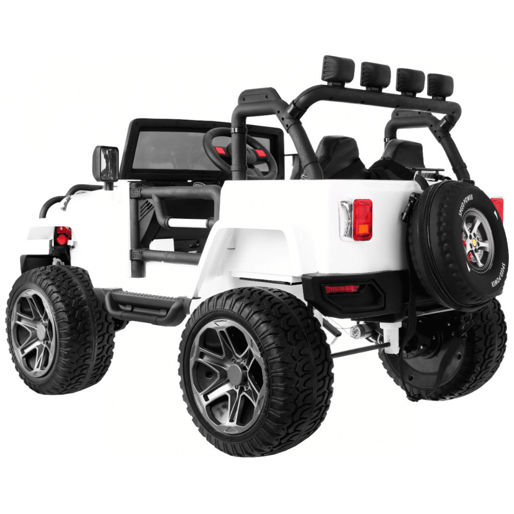 Auto terenowe typu jeep Monster 4×4 dla dzieci Biały + Pilot + Regulacja siedzenia + Wolny Start + MP3 LED + Bagażnik + Plecak