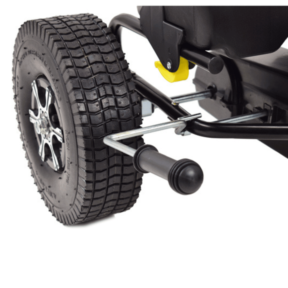 Gokart wyposażono w ręczny hamulec na oba tylne koła oraz załączany bieg „neutral”, który pozwala na chwilę odpoczynku bez kręcenia pedałami. Przekładnia łańcuchowa z metalowymi zębatkami gwarantuje niezawodny napęd zarówno do przodu, jak i do tyłu, zapewniając pełną kontrolę nad pojazdem.