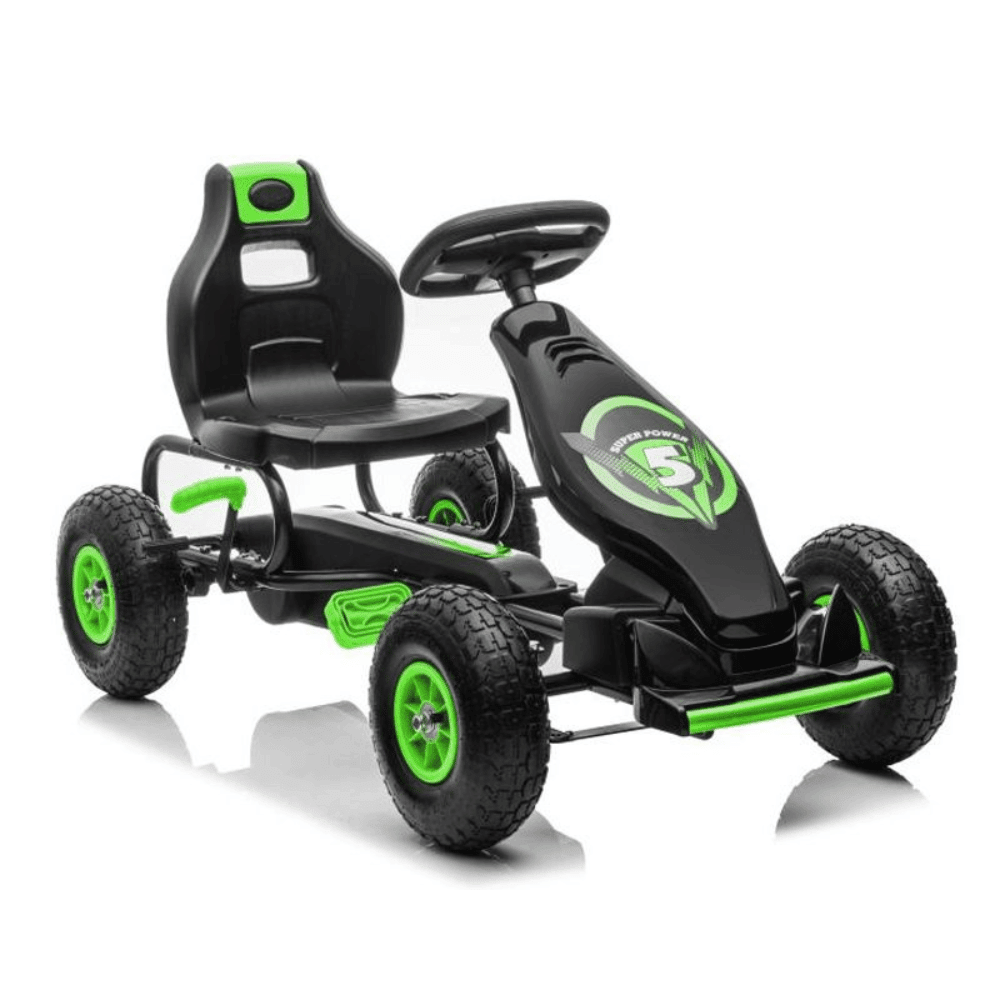 Gokart zielony na pedały idealny dla dzieci w wieku 3–8 lat i maksymalne obciążenie 50 kg.