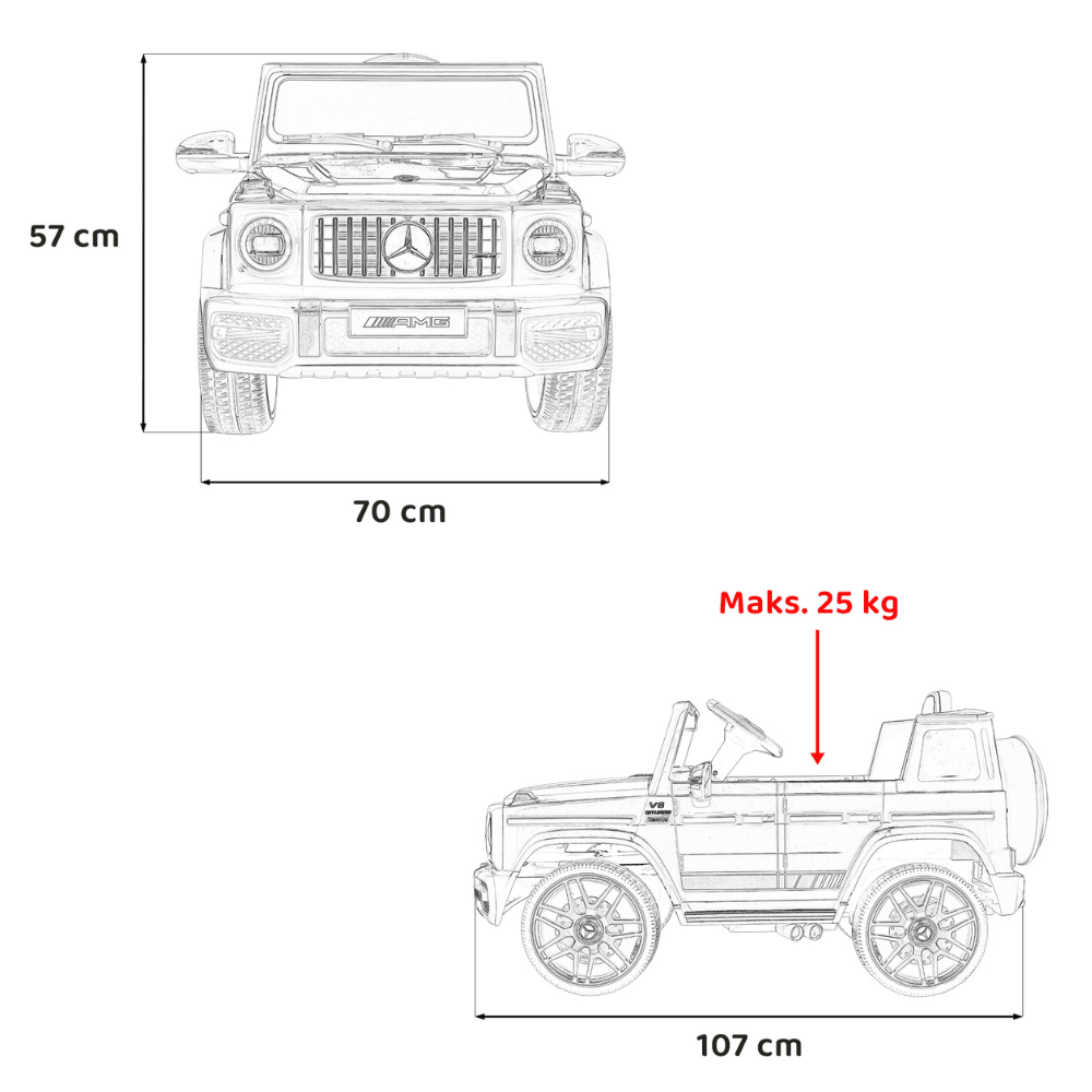 Mercedes AMG G63 dla dzieci Czarny + Pilot + MP3 LED + Wolny Start + EVA + Pasy
