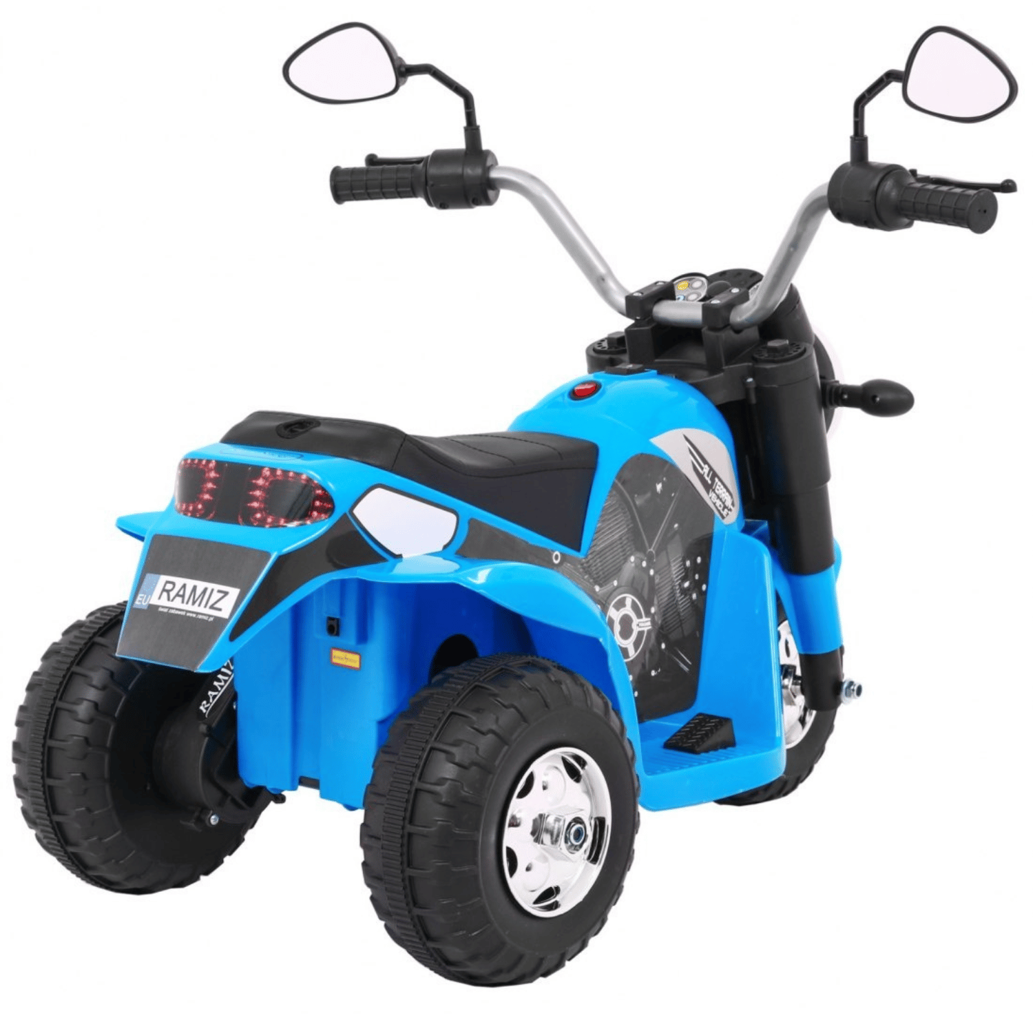 Motorek MiniBike na akumulator dla dzieci Niebieski + Dźwięki + Światła LED + Ekoskóra