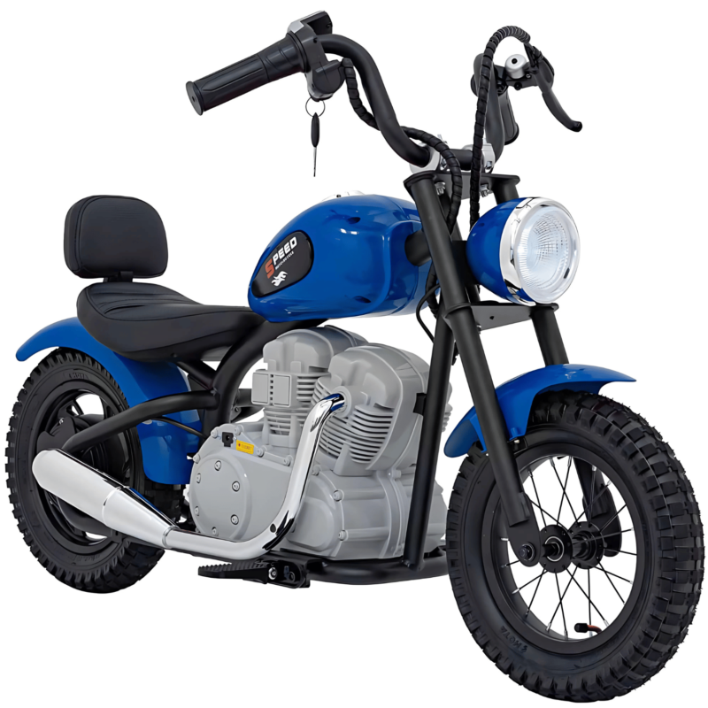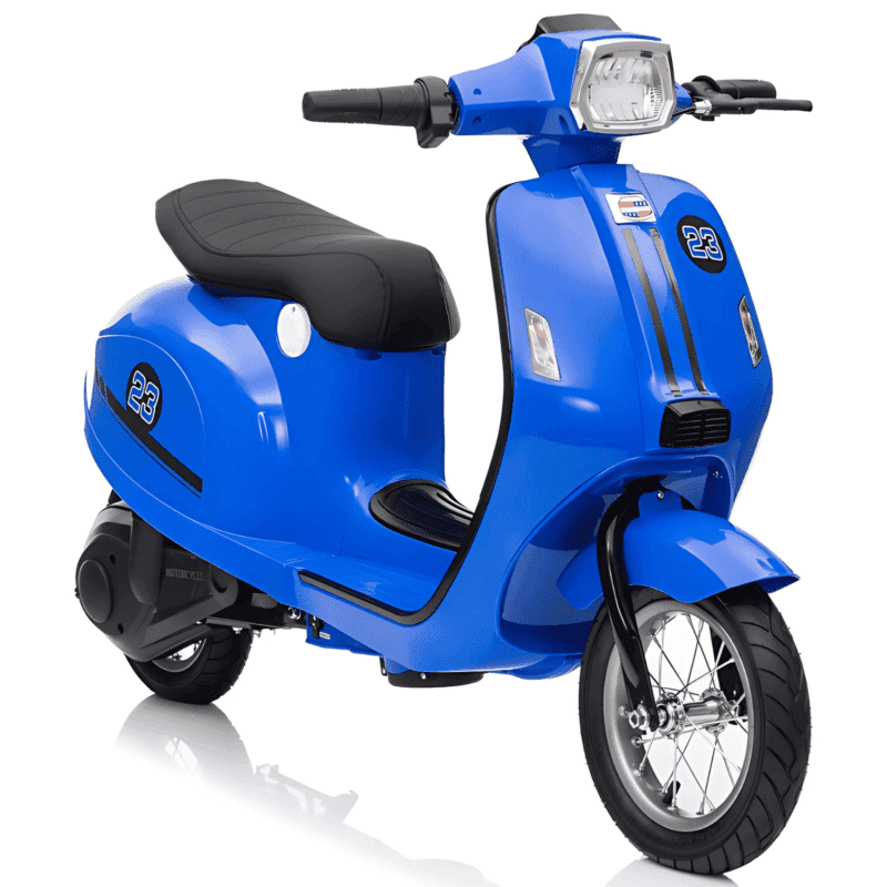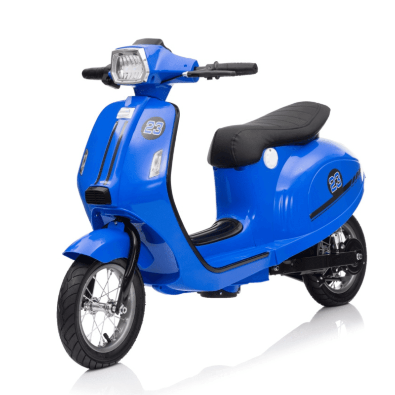 Skuter Vespa elektryczny dla dzieci Niebieski + Kółka pomocnicze + Audio + Ekoskóra + EVA + Wolny Start